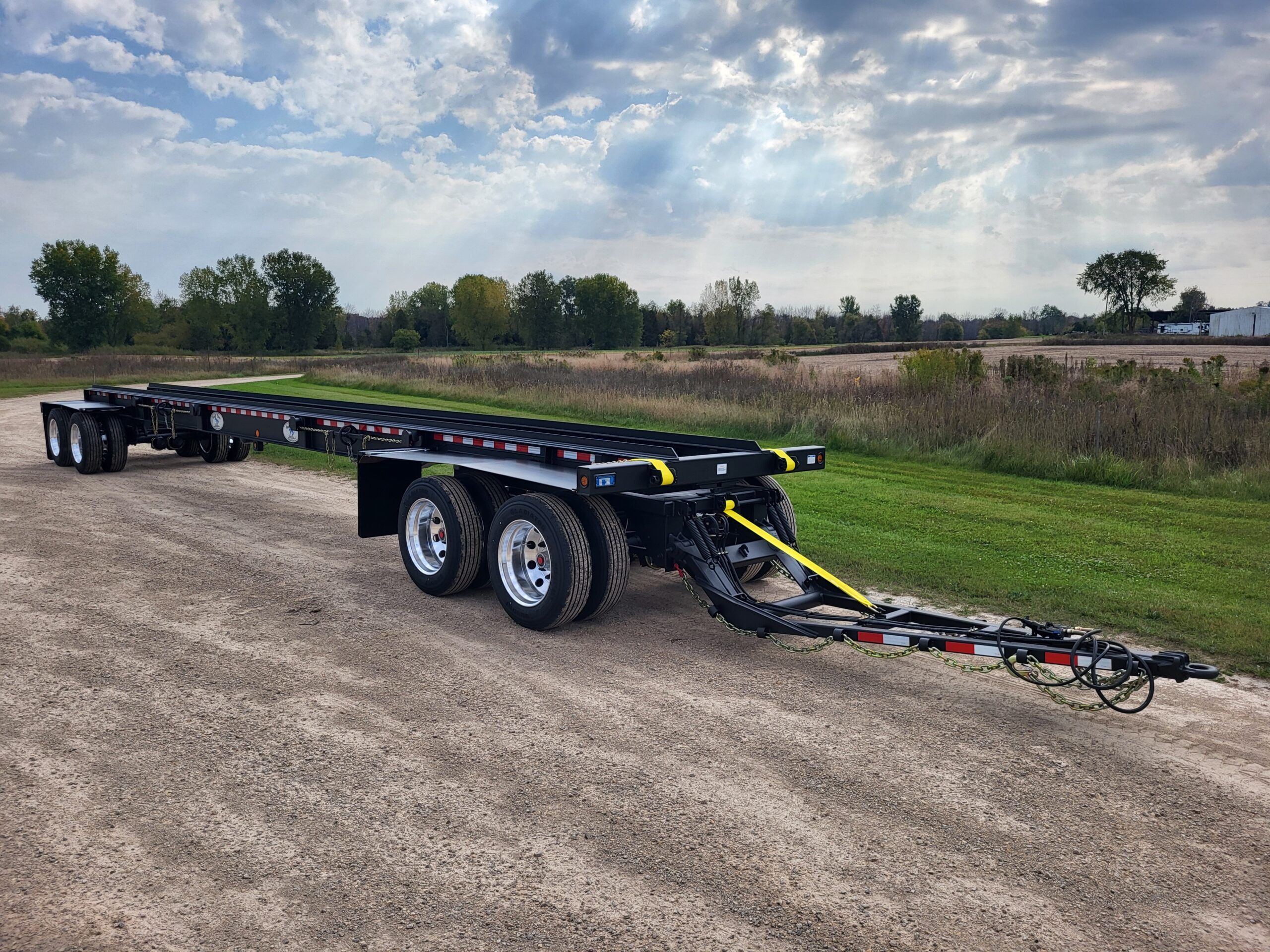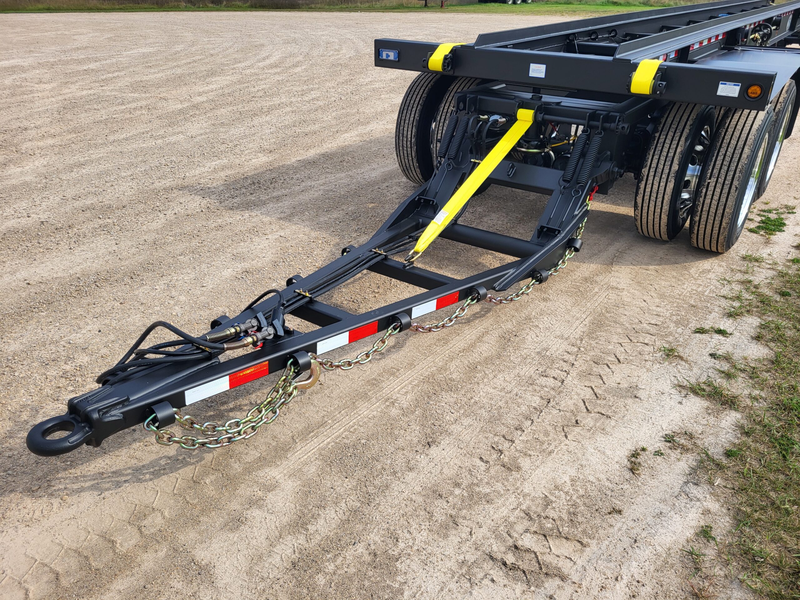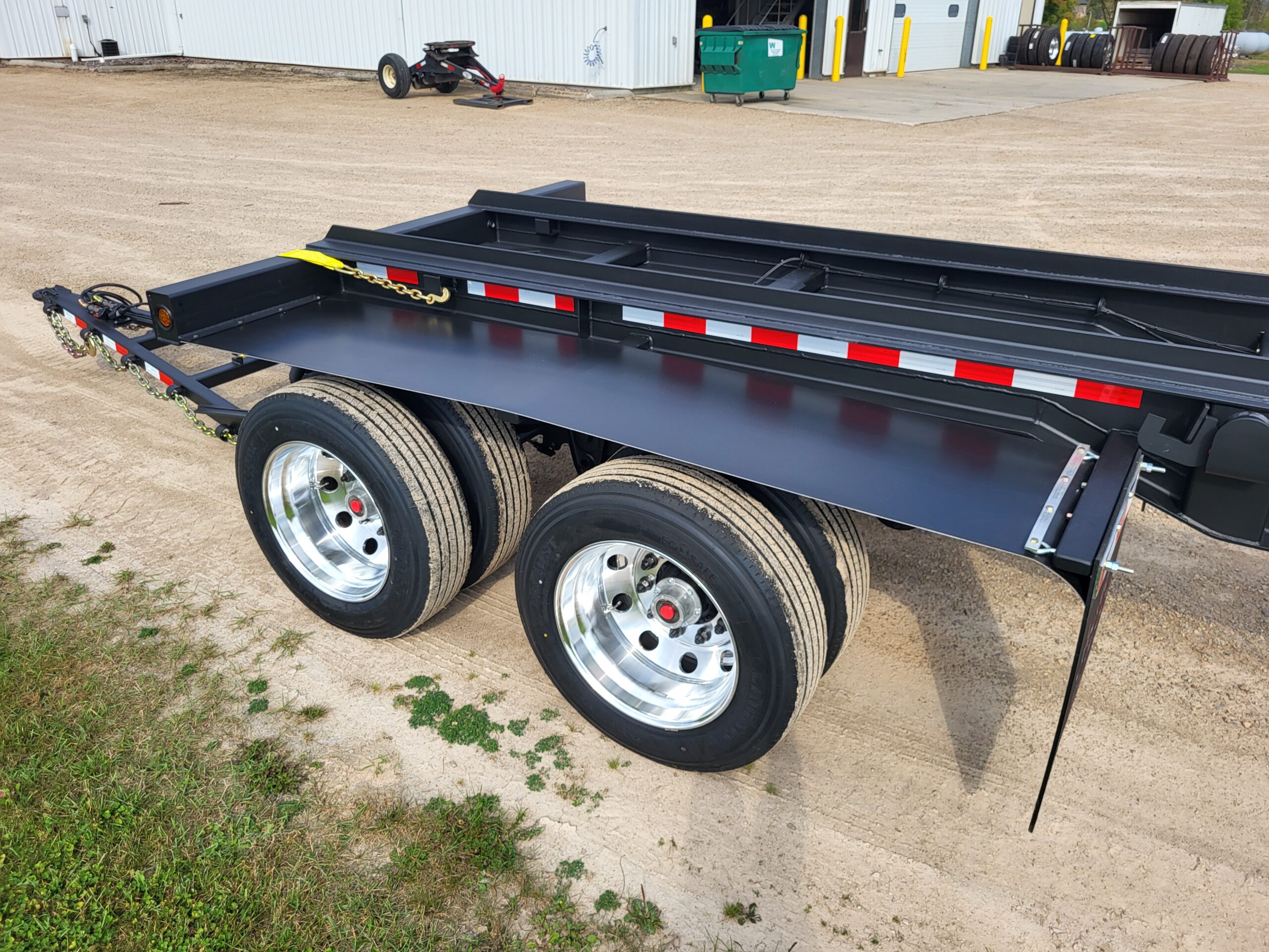 ROLL-OFF PUP TT4578 4 axle, 45′ load space, 78K GVWR. Double box capacity; can hold 2-24′ boxes. Drop style hitch for front loading capabilities. Side winch with “G” hook tie down.