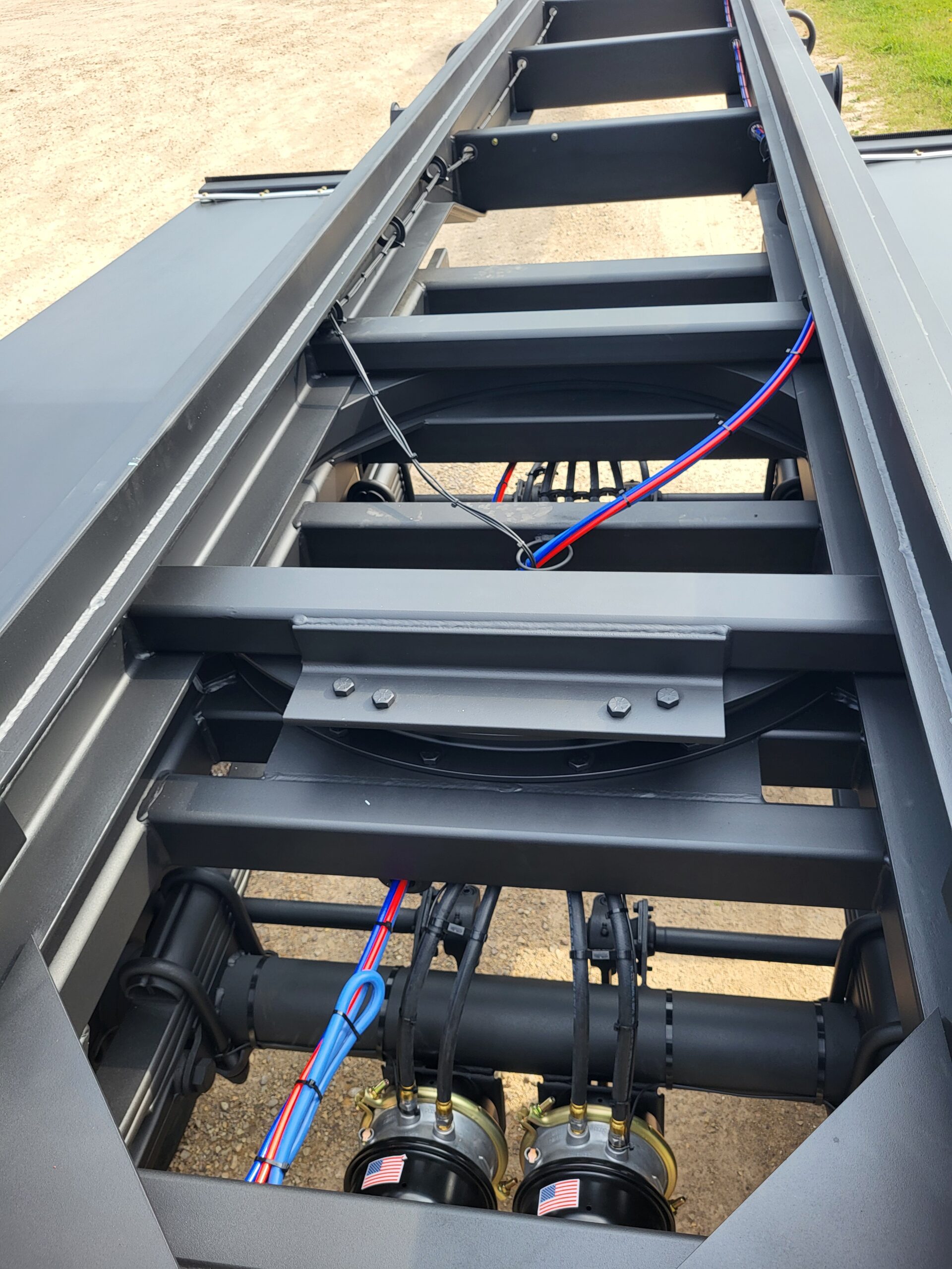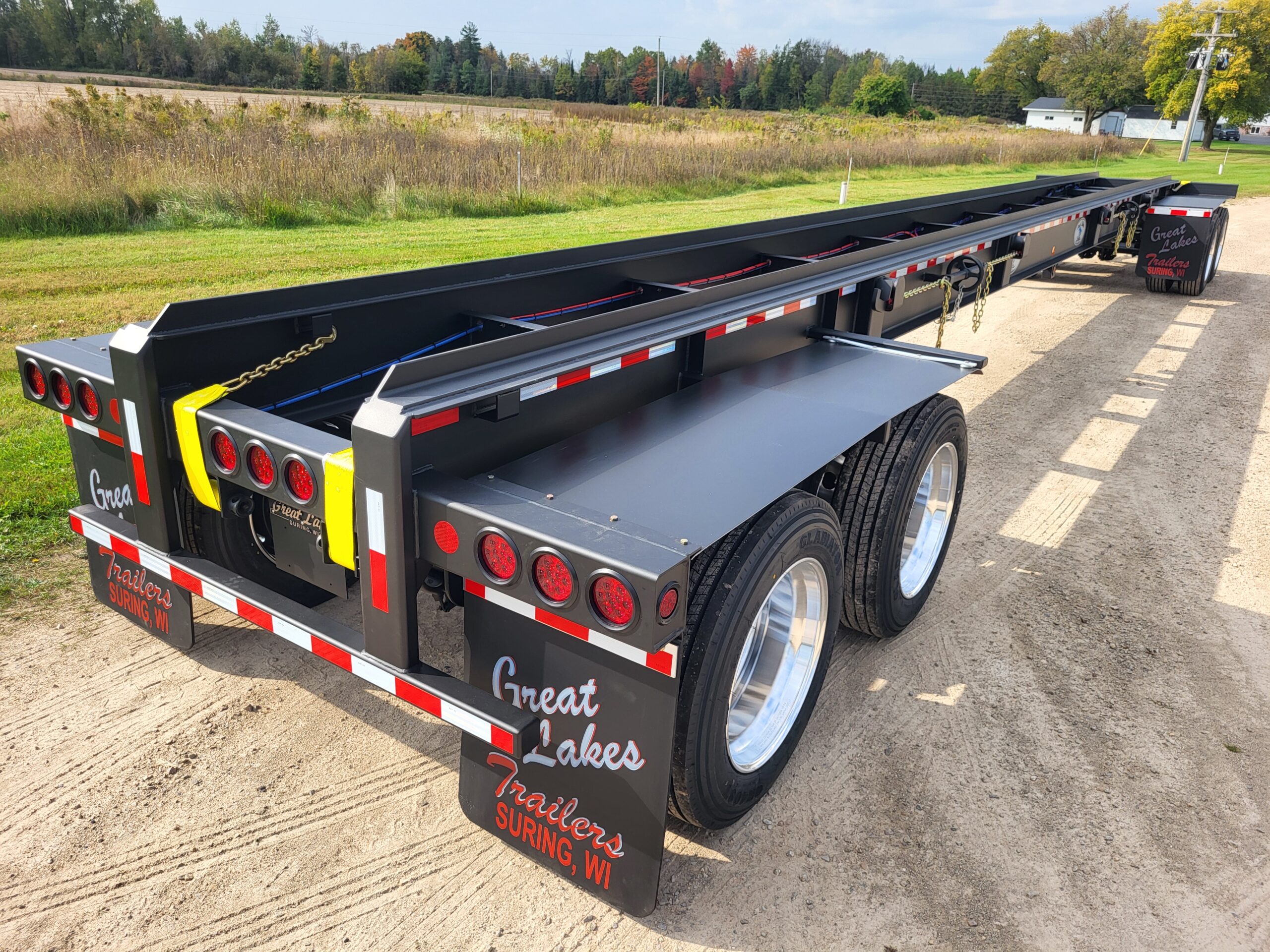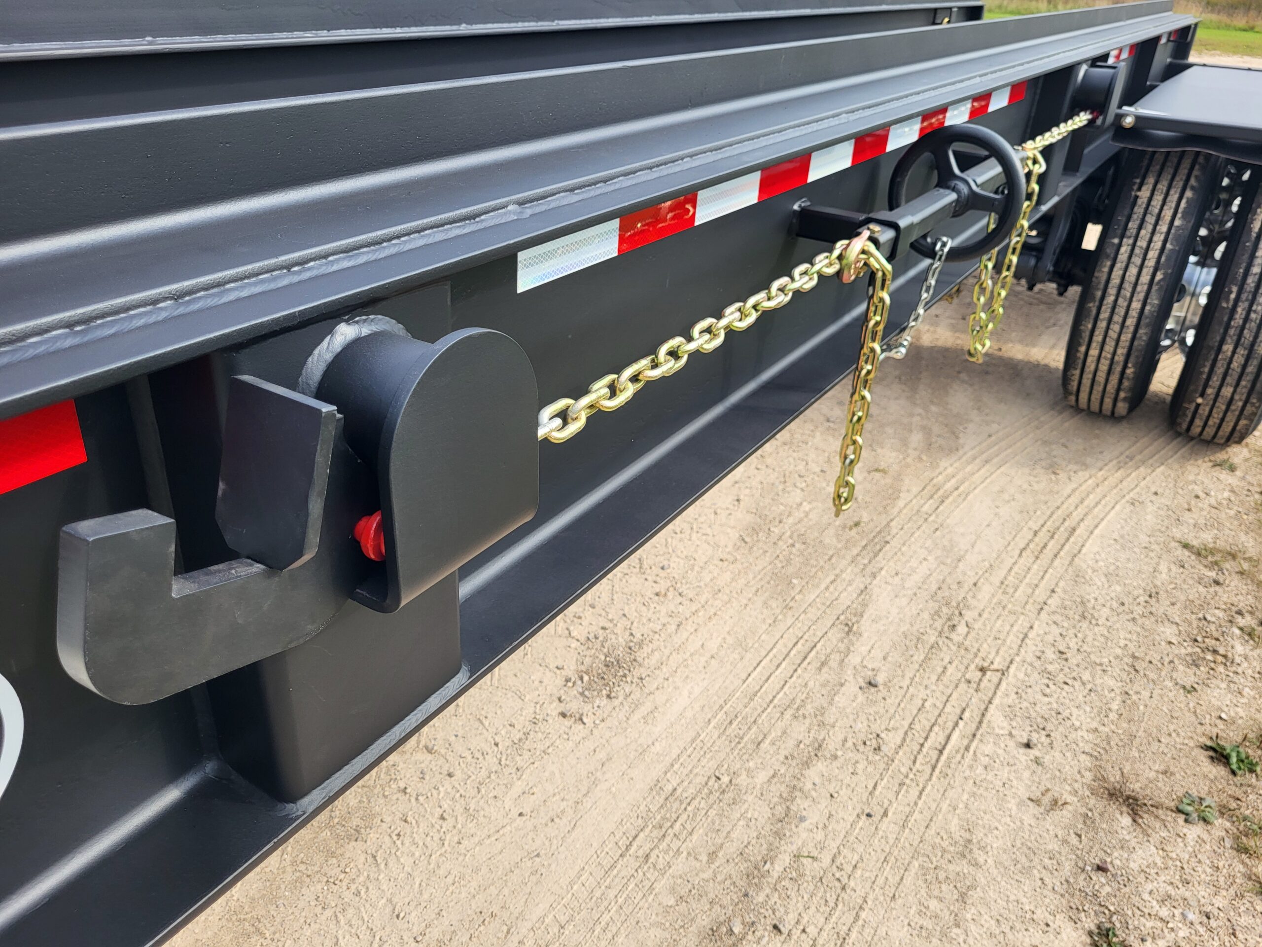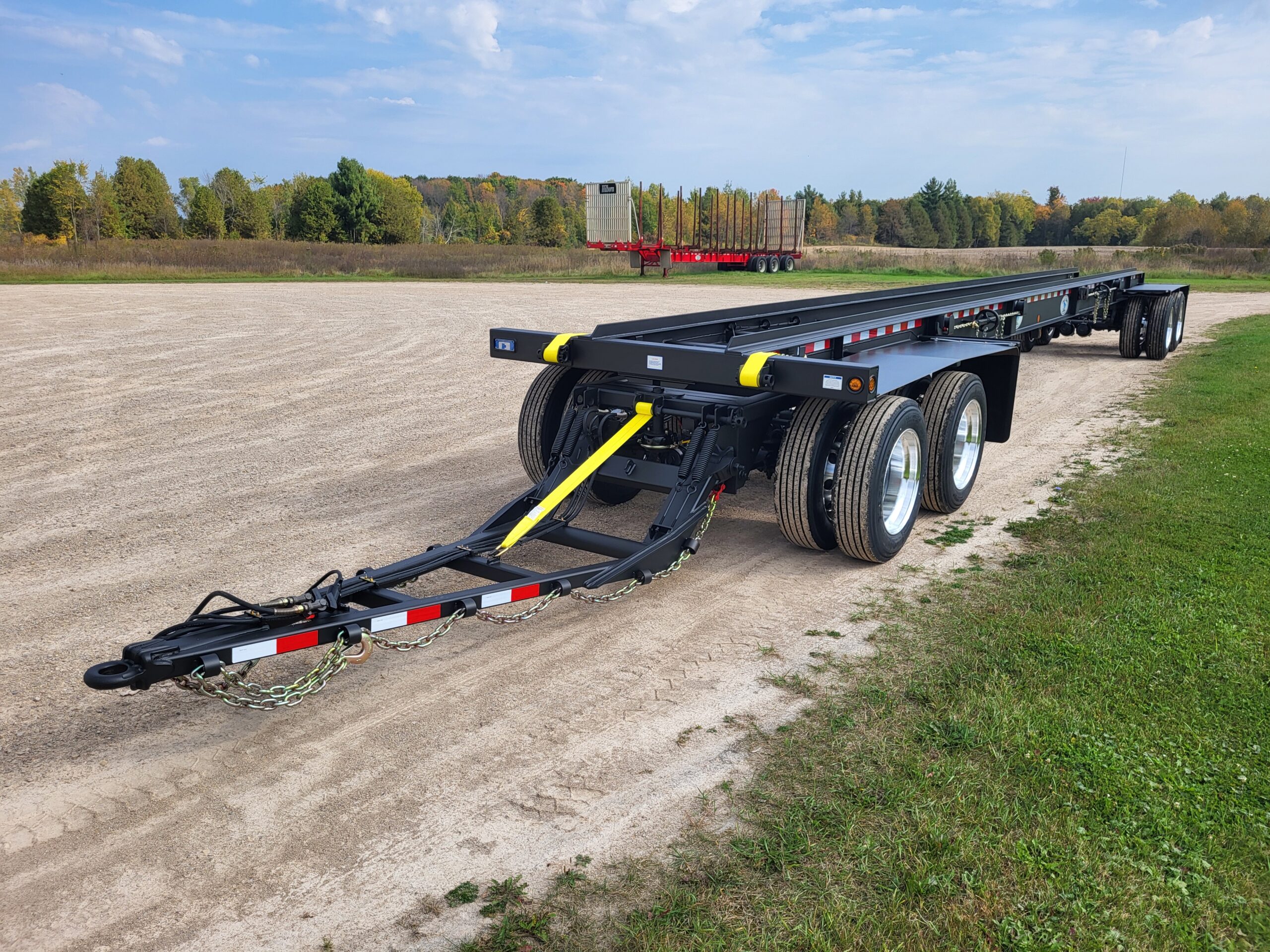 ROLL-OFF PUP TT4578 4 axle, 45′ load space, 78K GVWR. Double box capacity; can hold 2-24′ boxes. Drop style hitch for front loading capabilities. Side winch with “G” hook tie down.